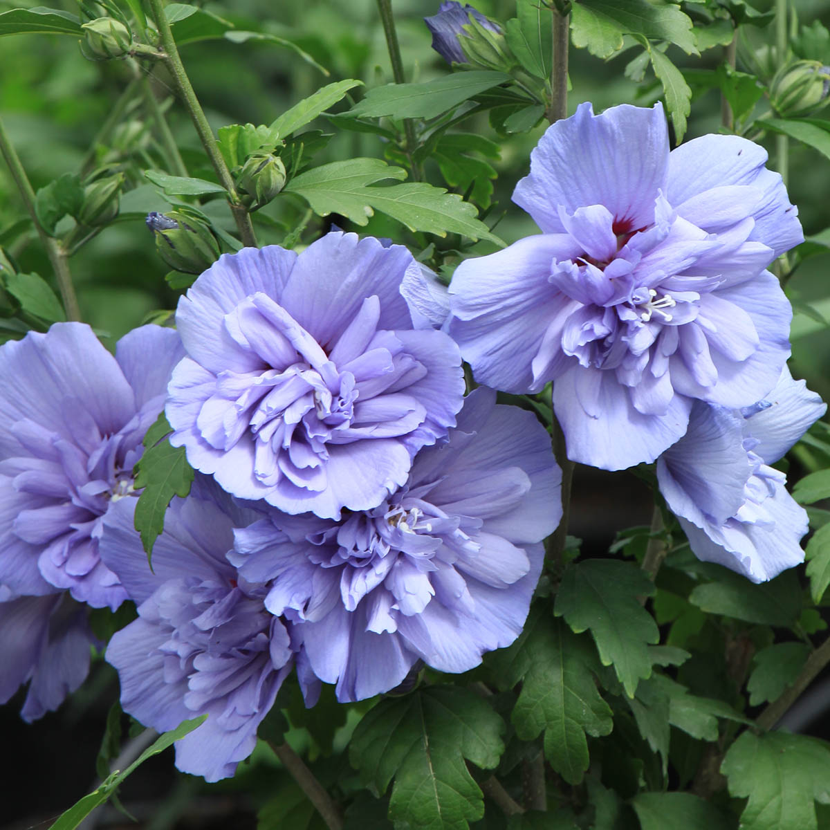 I modsætning til andre sorter af syrisk rose, har Chiffon® -sorterne en mere buskformet vækst med fine forgreninger, der er med til at danne en fyldig kompakt busk med masser af blomster.