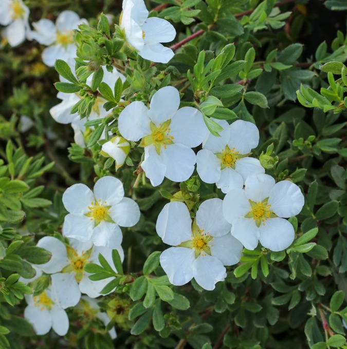 Tætgrenet busk, ca. 0,8 m høj og bred, med mange renhvide blomster fra juni - oktober. Trives bedst på en solrig placering i en alm. god muld. Både velegnet som lav uklippet hæk og som solitær. |