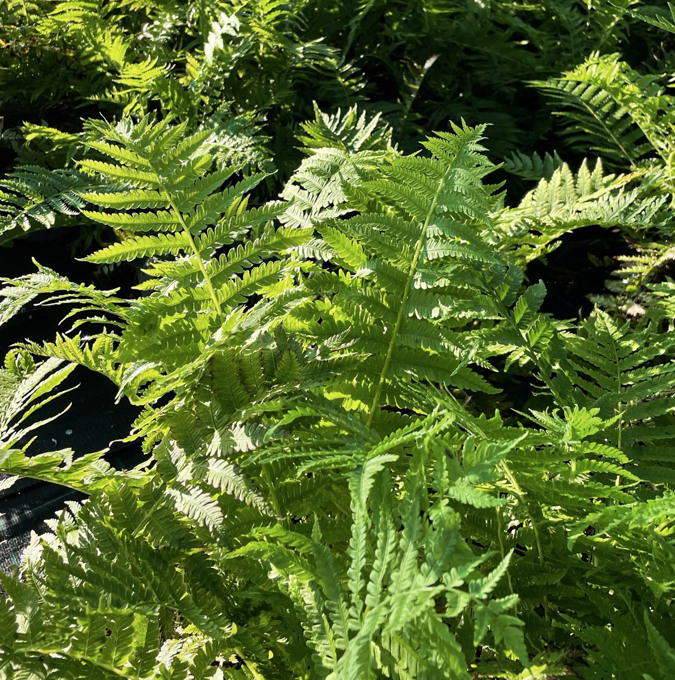 Også kjent som strutsevingel. Det er en stor og kraftig bregne som lett når en høyde på 1 meter. De lange, lysegrønne bladene sitter i rosetter og ruller seg majestetisk opp om våren. Dekorativ om vinteren. Klippes ned tidlig på våren. Trives best i humusrik jord i halvskygge, skygge. H7 |