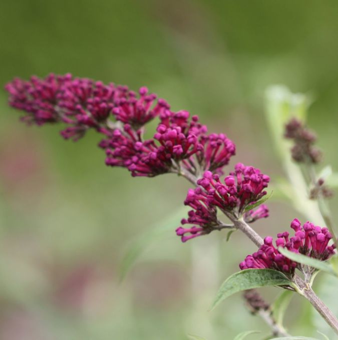 Åpen, opptil 2 meter høy busk med stive, buede grener og mørkerøde blomster i 20-40 cm lange klaser i juli-september. Plassering i full sol og ly, godt drenert jord. Egner seg som solitær og i grupper. Tiltrekker seg sommerfugler. H4. |