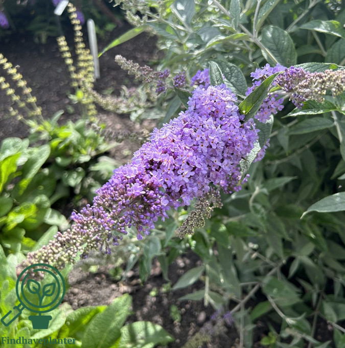 En lav og bred sommerfuglbusk som blir ca. 1 meter høy og bred. Duftende lavendelblå blomster i tette klaser fra august og langt utover høsten. Tiltrekker seg sommerfugler. Vakkert grønt løvverk og grener med et hint av sølv. Plasseres i full sol i vanlig hagejord. Kan trimmes ned om våren. H3. |