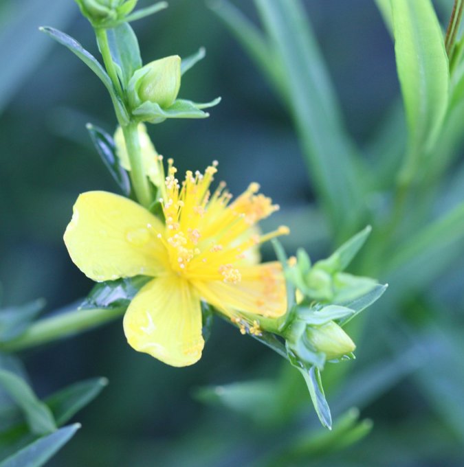 1 meter høy løvfellende busk med mange grener. Lysegrønne, lineære blader. Gule blomster fra juli til september. Frøkapsler til glede for fugler. Egner seg godt til formklipping. Plantes i sol eller halvskygge i humusrik hagejord. Trives også i sur jord. Nektar- og pollenvennlig. Den mest hardføre Hypericum. |