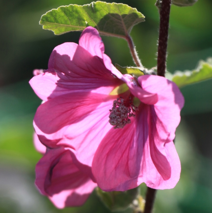 Buskete, opprett halvbusk. Ca. 0,5-1 m høy og bred. Store mørkrosa blomster i juli-oktober. Sol. God, veldrenert hagejord på det varmeste stedet i hagen. Plantes dypt. Frostfølsom, fryser tilbake hvert år. Også kalt poppelrose. |