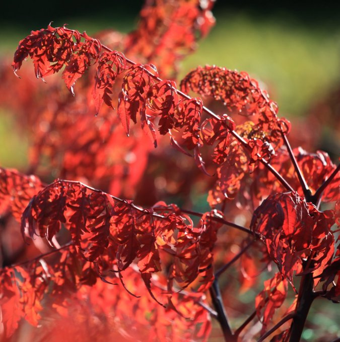 Bredt, flerstammet, arkitektonisk lite tre som blir 3-4 meter høyt og bredt. Grønne, flikete løvblader med intense røde høstfarger. Gulgrønne blomster midt på sommeren som blir til mørkerøde frukter. Plasseres i sol eller halvskygge. Plantes i generelt godt drenert næringsrik jord. H3. |