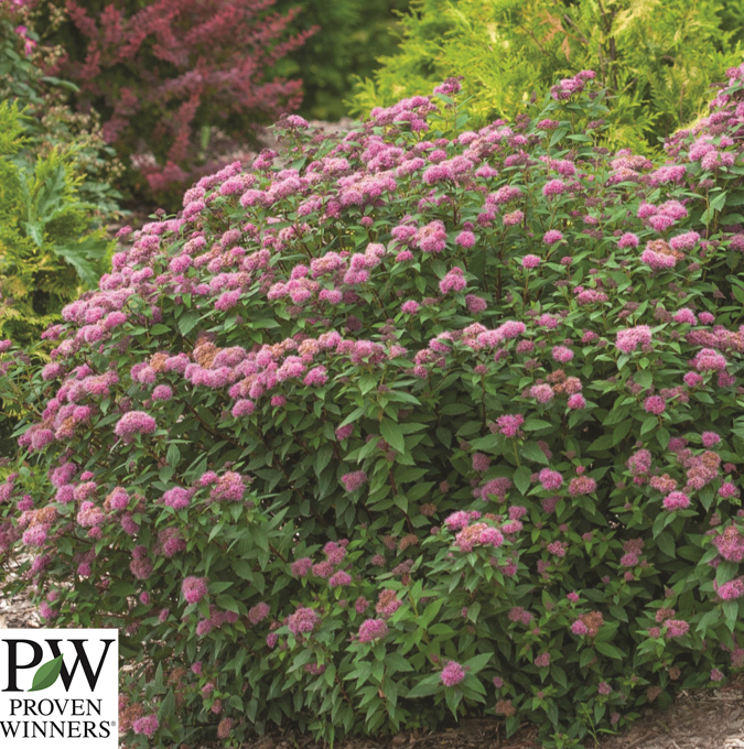 Denne Spiraea er en ekte fargeeksplosjon! De rødfargede unge skuddene blir til et vakkert mørkegrønt bladverk. Fuchsiafargede blomster fra juni til september. Naturlig rund vekstform. Høyde ca. 60 cm. Plasseres i sol eller halvskygge. Frostbestandig ned til -25 °C. H5. |