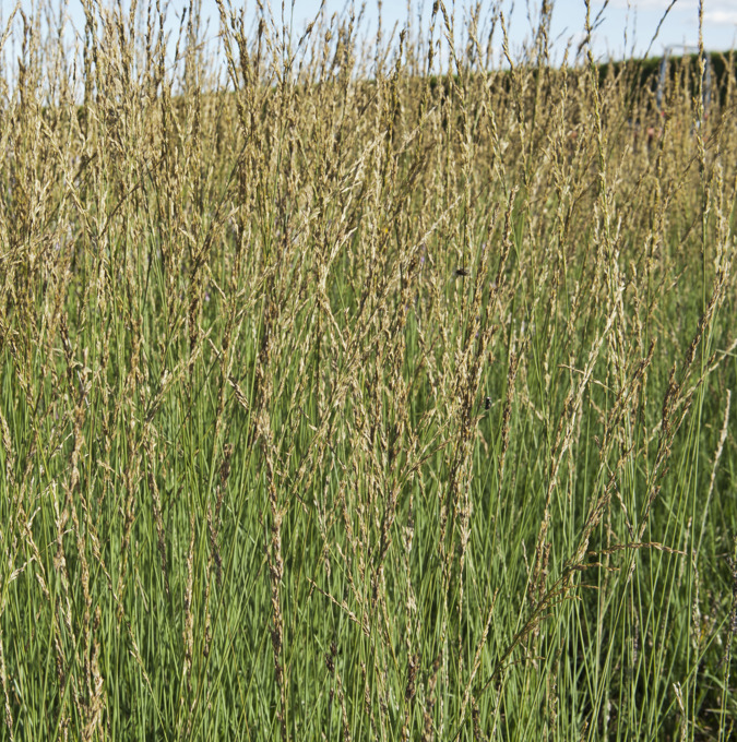 Bladhøyde 30-50 cm. Høyden på piggen er 100-120 cm. Blomstrer i juli-september. Små fiolette blomster. 6 per kvadratmeter. Trives i både sol og skygge. Vokser i generelt fuktig, men godt drenert hagejord. Middelvoksende, overhengende og fullt herdig gress. H5. |