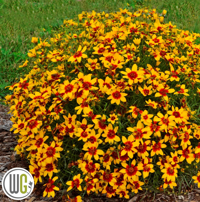 Blomsterrik og kompakt. Blomstrer rikt fra forsommeren til høsten med gule og røde blomster. Et skikkelig blikkfang. Vakkert grønt, trådformet løvverk. Høyde ca. 40 cm. Bredde ca. 55 cm. Bra for potter. Plasseres i sol i vanlig pottejord. Eller i bedet i godt drenert hagejord. Overvintrer i milde vintre. H5. |