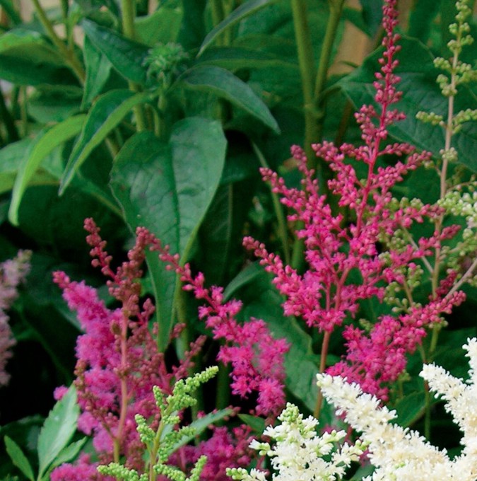 Lav, kompakt staude med mørkegrønt, fyldigt løv på 30 cm. Tæt, fjerlignende blomsterstande i pink nuancer. Blomstre i juni–juli. Trives i halvskygge til skygge i fugtig, humusrig jord. Velegnet i grupper, bede og krukker. |