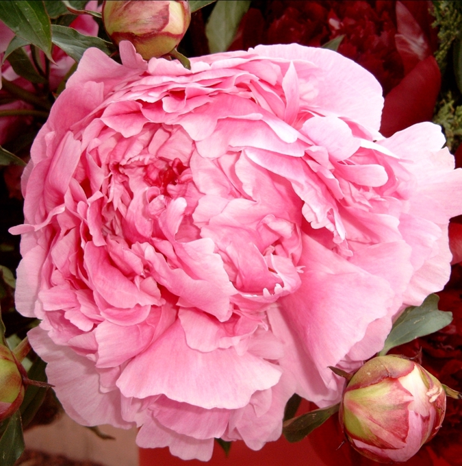 Pæon, 80 cm høj. Blomstrer i juni-juli med store duftende, dobbelte, lys rosa blomster. Store blanke blade som får fine efterårsfarver. Trives i sol til let skygge i næringrig jord. Velegnet i buketter, hvor den holder godt i vasen. |