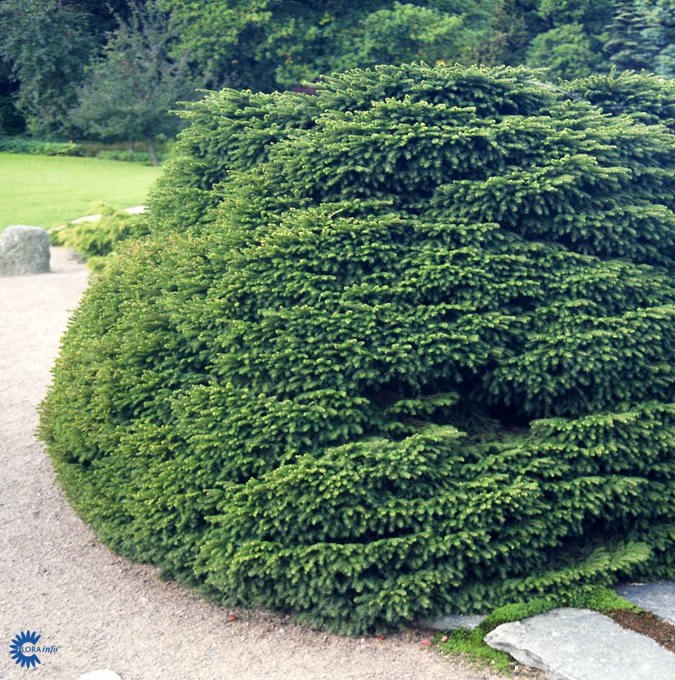 Barrväxt med en tät form. Höjd efter 10 år ca. 50 cm och 60 cm bred. Mycket härdig och frisk. Trivs i sol-halvskugga i en väldränerad och näringsrik jord. Zon 1-7 |