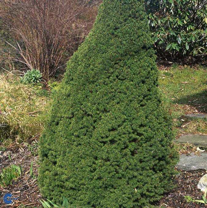 Barrväxt med kompakt sockertoppsform. Blir ca. 1,5-2 m hög. Gröna barr. Växer långsamt. Tris i sol-halvskugga. Växer i vanlig trädgårdsjord. Zon 1-5. |