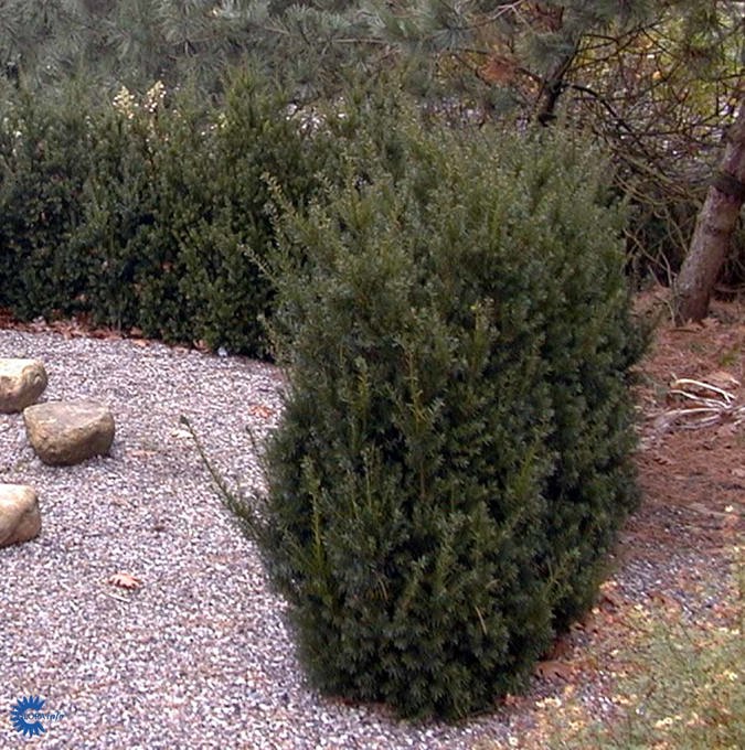 Städsegrön barrväxt som blir 2-3 m hög och 1m bred med ett tätt, upprätt växtsätt. Blanka, mörkgröna mjuka barr. Sätter inga bär. Trivs i sol-skugga i vanlig god jord. Lämplig till klippt häck. Zon 1-5. |