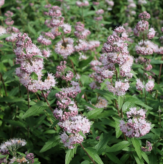 Lövfällande buske, upp till 1 m hög. De ljus rosa blommorna sitter i kvastar på de nya skotten i september-oktober. Trivs i soligt läge i väldränerad jord. Fryser ofta tillbaka på vintern. Beskär till frisk ved på våren. |