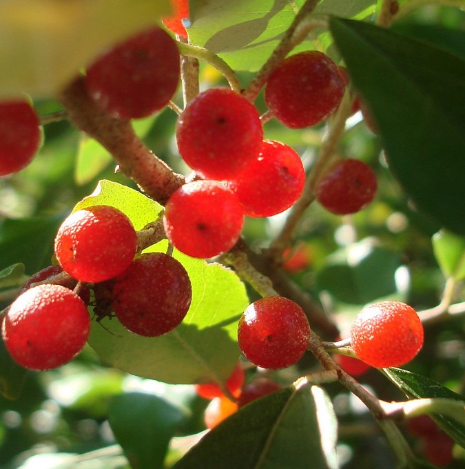 Medelstor lövfällande buske med elliptiska silvergröna blad. Cremegula doftande blommor. Söta, röda bär som mognar från september. Amoroso är särsklit utvald för att mogna tidigt. Korspollinering från en annan sort säkrar fruktsättningen.Trivs i sol-halvskugga i god mullrik jord. Zon 1-3. |