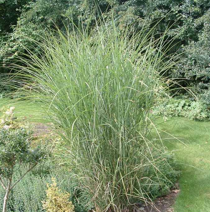 Kraftig 1,7 meter hög krona med lätt överhängande och smala mörkgröna blad med vit mittremsa. Eleganta, kopparlila och silkesmjuka ax i slutet av sommaren. Trivs bäst i sol - halvskugga i en allmänt fuktig men väldränerad trädgårdsjord. Zon B. |