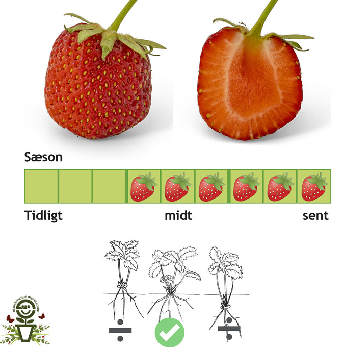 Remonterande sort som ger bär hela sommaren. Medelstora söta bär utan syra.Passar även bra i krukor och amplar. Zon 1-5. |