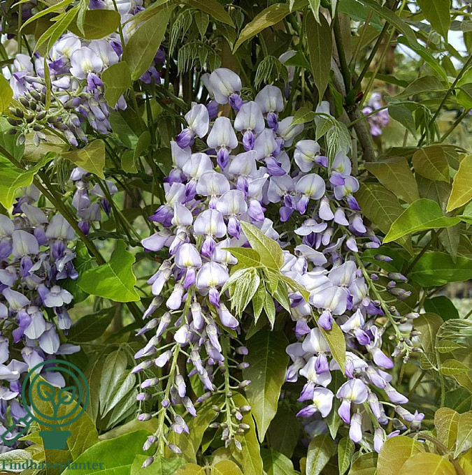 Kraftig slingerväxt med gröna flikiga blad. Klipp tillbaka under vintern. Mycket långa klasar av vackra violetta blommor, blommar i maj - juni. Trivs bäst i soligt läge i en väldränerad och näringsrik jord. Zon 1-3. |