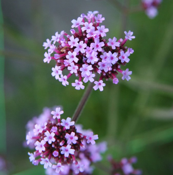Jätteverbenan blir ca. 1,5 m hög och får stadiga stjälkar med små doftande ljusvioletta blommor i juli-september. Trivs i soliga lägen på näringsrik, väldränerad jord. Fin i såväl rabatt som kruka. Används som sommarplanta eller perenn, då den gärna självsår sig. Drar till sig fjärilar. Härdighet C. |