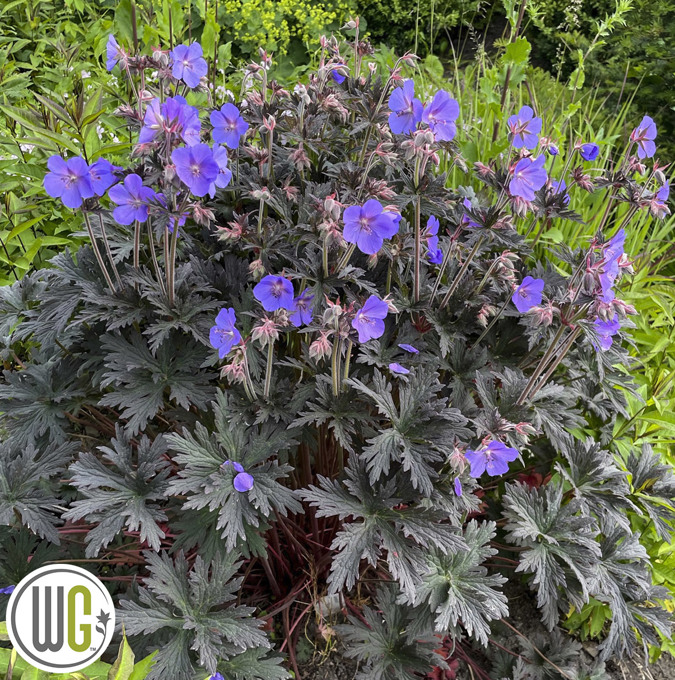 Upprättväxande perenn. Mörkbladig, frodig och tacksam. Blommar tidigt med blålila blommor. Fyller ut bra i bädd eller kruka. Höjd ca. 60 cm., bredd upp till 75 cm.. Trivs i sol till halvskugga i ordinär jord. Bra för bin. Den första nävan i Walters Gardens serien. |