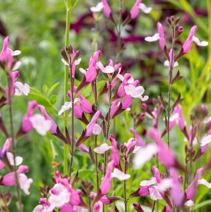 Perenn. Rosa-vita blommor. Friska gröna blad. Höjd ca 50 cm och samma bredd. Lämplig för krukor och trädgårdsbäddar. Placeras i sol i vanlig trädgårdsjord. |