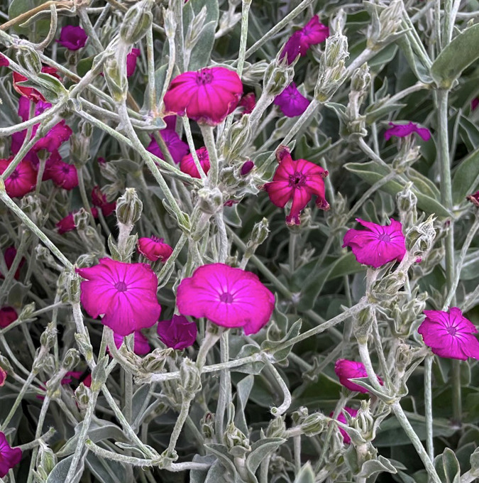 Perenn, 75 cm hög med vackert grått bladverk som håller sig över vintern. Röda blommor från juni-september. Soligt läge och väldränerad jord. Torktålig. Fin till snitt. Självsår sig gärna. Zon A. |