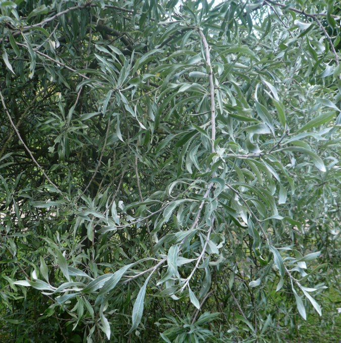 Silverpäron är ett fint lövfällande träd, som har de vackraste, grågröna, elliptiska blad. Blommar i april - maj månad med små, vita blommor. |