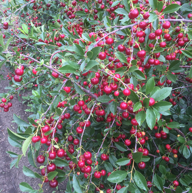 Robust surkörsbär som växer som buske upp till 2,5 meter hög. Vita blommor i maj. Självbefruktande. Stora bär och hög avkastning. Efter skörd skärs de gamla 3-4 åriga grenarna bort vid markytan. Frisk kanadensisk sort, lämplig för det nordiska klimatet. Bildar rotskott. |